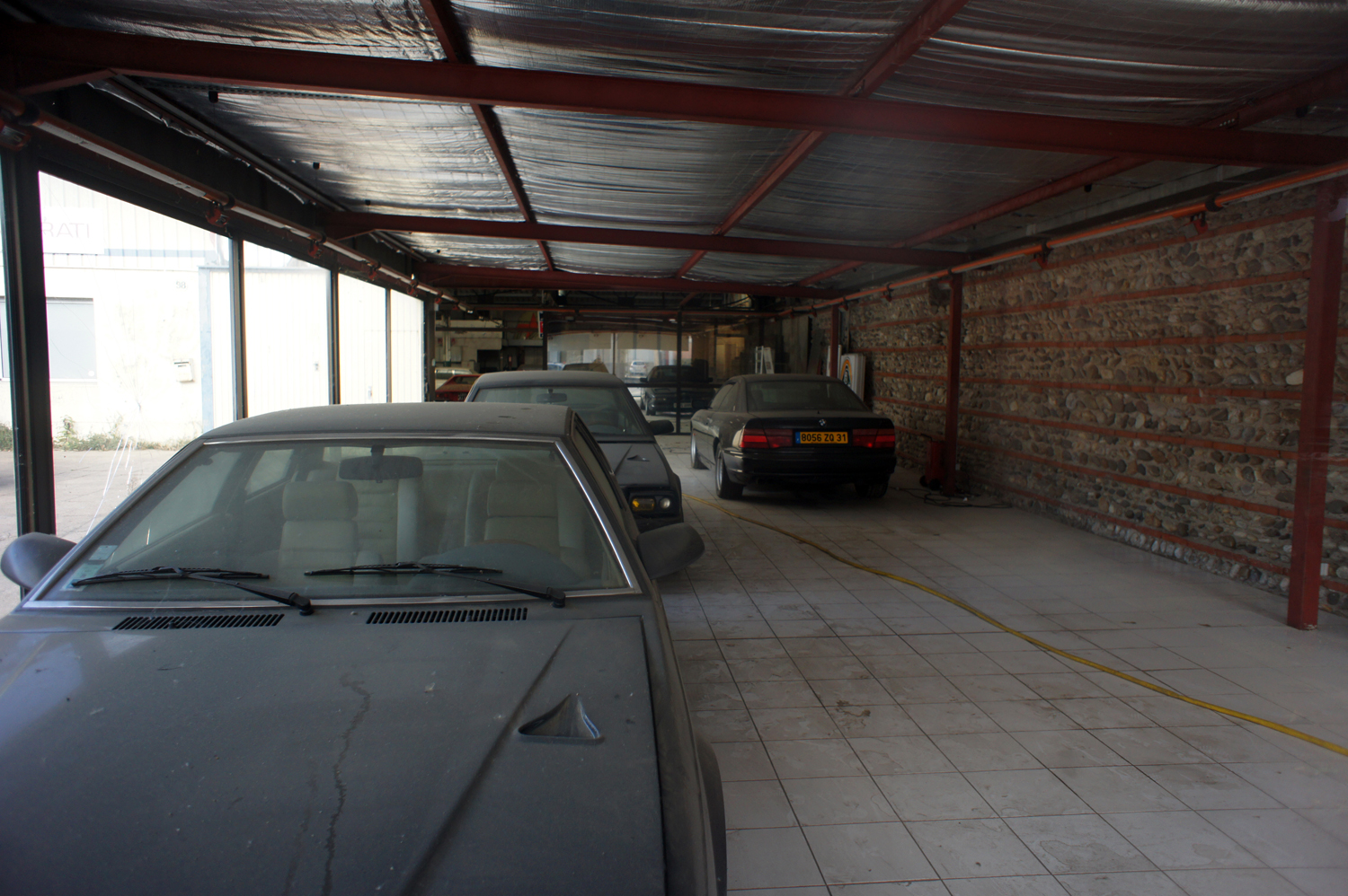 Au détour d’une rue, pourtant sous les yeux de milliers de passants indifférents, se trouve cette concession abandonnée qui a précipitamment fermé ses portes. Certes, ce ne sont pas des premières mains, mais dieu seul sait ce qui peut se cacher derrière ces portes. On y reconnaît, pèle mêle, une Quatroporte, une biturbo, un coupé série 8. Au fond, une Dino, une Shamal et une XJ12 vous attendent….