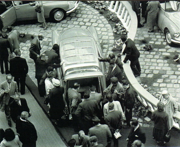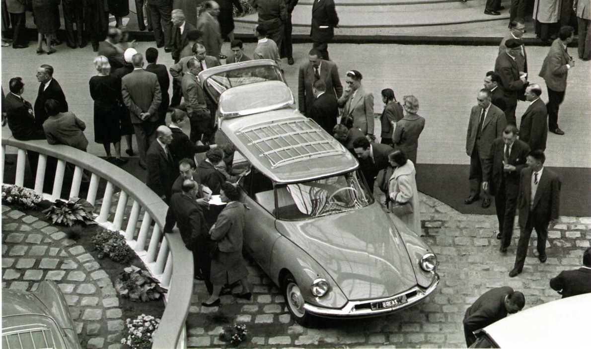 Ce qui doit perturber le passant est l’absence de références stylistiques qui permettraient de dater facilement la DS. En 1955, elle côtoyait la 403 au salon de Paris. Diable que les cadres de Peugeot ont dû se mordre les doigts d’avoir demandé à l’italien en costard de signer une auto « très classique ». En face, le bidule de Citroën est couché sur ses suspensions. Son capot pointu, presque dépourvu de calandre, est tendu vers eux, comme s’il voulait les montrer d’un doigt moqueur. Tout le monde est sur le stand de la DS, tantôt ébahi devant son toit en fibre ou son volant à une branche, tantôt stupéfait par ses roues arrières carénées… Si à l’époque les Américains tentaient toutes sortes de subterfuges pour singer l’aviation, c’est bien Citroën qui les a coiffé au poteau sur le thème de la soucoupe volante.