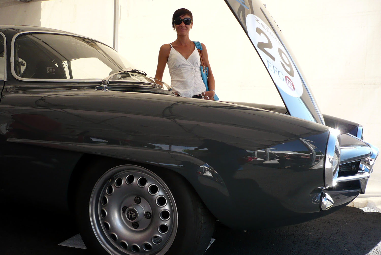 Cette auto, vous en rêviez depuis des années et elle passe aujourd’hui devant vous. Elle n’est pas dans la cage de verre à laquelle sa côte croissant plus rapidement que le nombre de chômeurs la prédestine. Elle est dans une ligne droite sur un circuit, à fond. Son V12 émet un son métallique, strident, assez élégant. Elle tente de fuir les trois furieuses Bizzarrini dont les V8 crachent des flammes à chaque montée de rapport, prêtes à l’avaler toute crue. Derrière, trois 250 GT forment une sorte de garde rapprochée dépassée par les événements. Puis arrive le petit challenger: une Alfa Romeo TZ!? Son petit 4 cylindres 1500 ne semble absolument pas intimidé par les gros V12. Le peloton est fermé par les Porsche Abarth 356. S’il est habituellement rare d’en croiser une, nous en avons ici quatre qui donnent tout ce qu’elles peuvent pour rester en contact avec le reste de la course. L’épreuve se termine sur une victoire méritée de la 250 GT LM, les V8 se sont essoufflés dans la course, arrachant seulement une seconde place devant une Ferrari 250 GT.