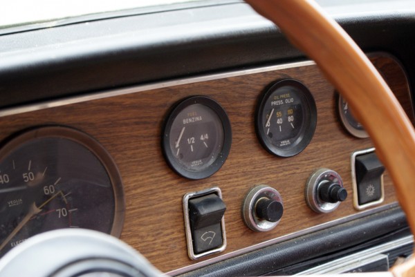Equipée de 4 freins à disques, d’un 4 cylindres à double arbre à cames en tête de 1438 cm3 de 90 ch et d’une boite 5 rapports, l’auto est moderne vive et légère. L’habitacle, largement vitré est spacieux, est mis en valeur par une sellerie en vinyle d’un bel aspect. On y retrouve la finition moyenne des Fiats des années 60: plaquage bois épais comme du papier à cigarettes, plastique fragile et sensible aux uv…