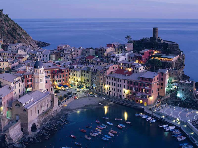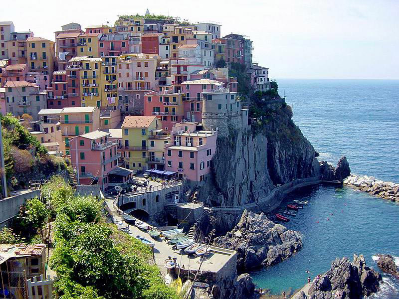 Il est des noms qui exhalent l’imagination. Rien que d’entendre cinq terres, et pour peu que l’on ait lu Loisel, on se trouve immédiatement transporté au pays des sept marches, à enchaîner quête après quête, aux cotés d’un gros barbu et d’une petite rousse gironde. Passée la ville de La Spezia, le seul moyen de se rendre dans ce pays est de prendre le train ou le bateau. Ce paysage de plateaux à flancs de montagnes surplombe la méditerranée et n’accepte pas les compromis: peu de routes, peu de plages. La beauté est à ce prix. « Terre » était le nom donné en Italie ancienne, aux bourgs. Les cinq bourgs qui forment cette sorte de quintessence de la Riviera sont Monterosso al mare, Vernazza, Corniglia, Manarola et Riomaggiore. Le paysage est sublime, entre ces villages accrochés à la falaise et les innombrables petites baies de la région, le chemin de l’amour (oui, c’est kitch) permet de traverser la région à pieds. Il est alors possible de prendre de la hauteur et en être récompensé par une vue imprenable sur la méditerranée et ses petites criques au détour desquelles on trouvera un petit port de pêche et les villages côtiers qui préservent les 5000 habitants des cinq terres du monde extérieur. Chacun de ces villages a son charme. Petites ruelles, maisons colorées, l’Italie comme on la connaît. Pour un budget relativement modeste, il est possible d’y trouver une chambre ou un appartement et de s’y délasser après avoir profité de la cuisine locale, bien entendu orientée vers la mer.