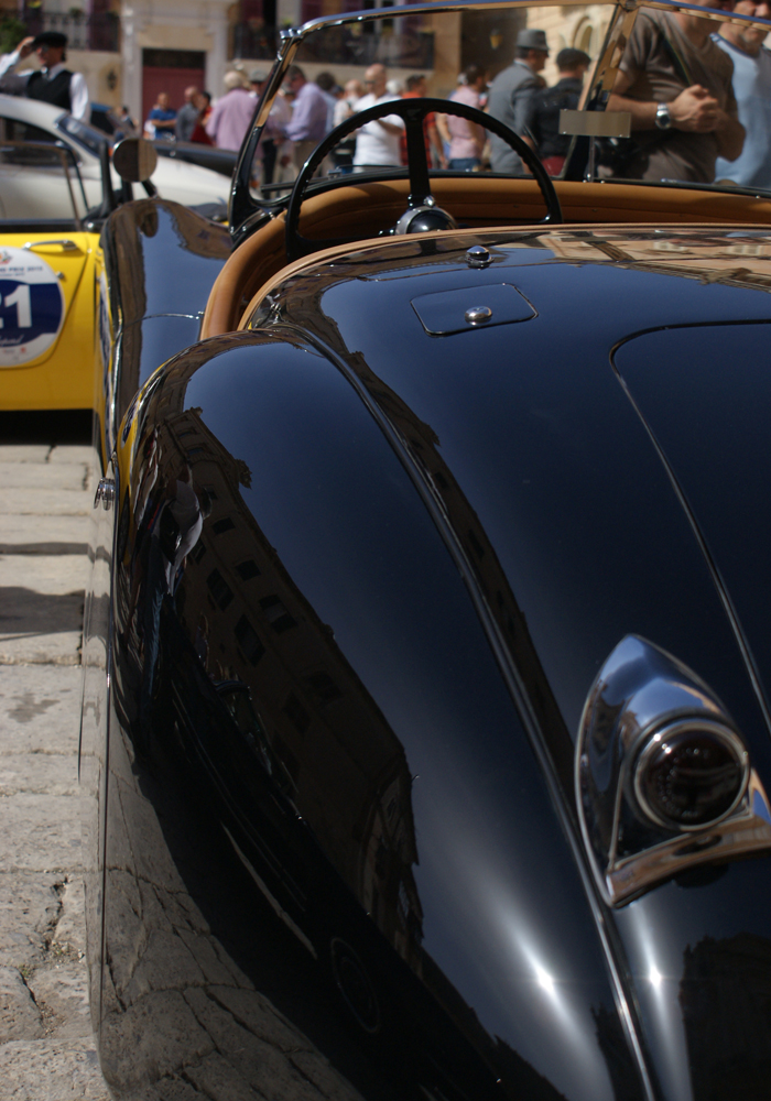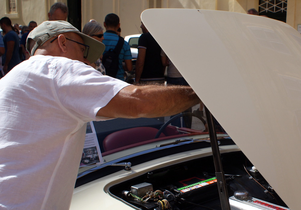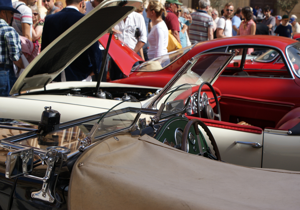 Vous décidez finalement de vous rendre au concours d’élégance qui lance les festivités. Sur la place principale de la ville, le plateau est hétéroclite. Une Minor côtoie une SS1 et une Alfa 2000 spider, le tout entre une cabine téléphonique anglaise et une cathédrale monumentale. La plupart des voitures présentes participent aussi au Grand Prix. Et pratiquement toutes présentent un état proche du neuf. Même lorsque vous-vous approchez des raretés de l’île, comme la Turner Sports, la Frankenhealey (conversion V8 d’une 100/4) ou la Swallow Doretti, les propriétaires n’hésitent pas à vous abreuver de détails et d’anecdotes.
