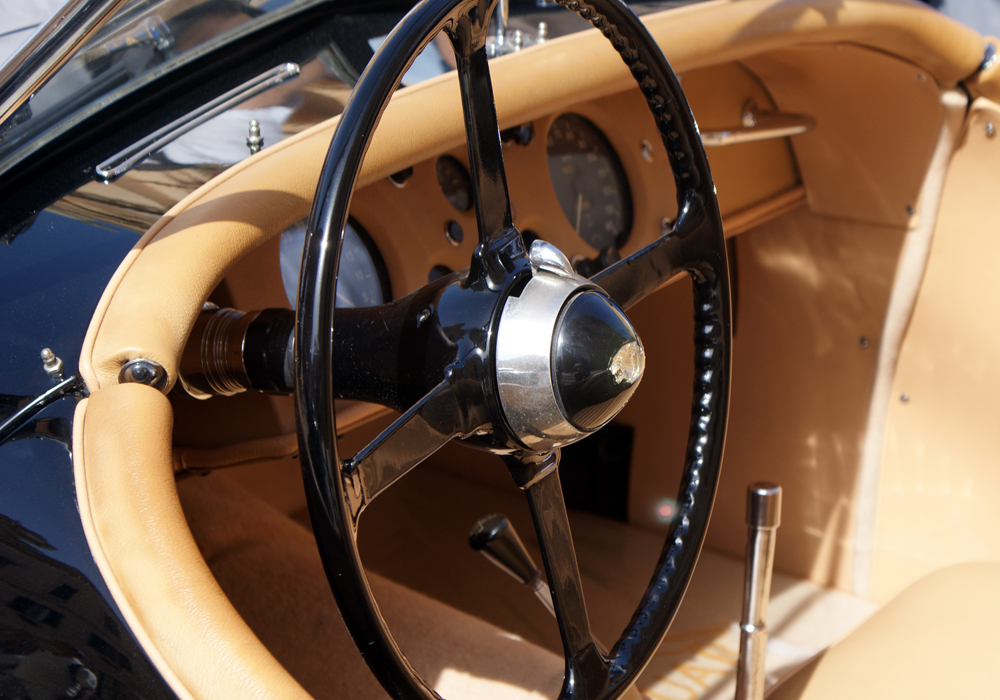 Et des histoires, l’homme en possède un plein chapeau. Il commence par vous présenter sa Jaguar Type C, celle de Stirling Moss, qui a participé au Mans avec lui. Il reste imperturbable lorsque vous objectez qu’une vraie Type C n’est pas faite de fibre de verre…
