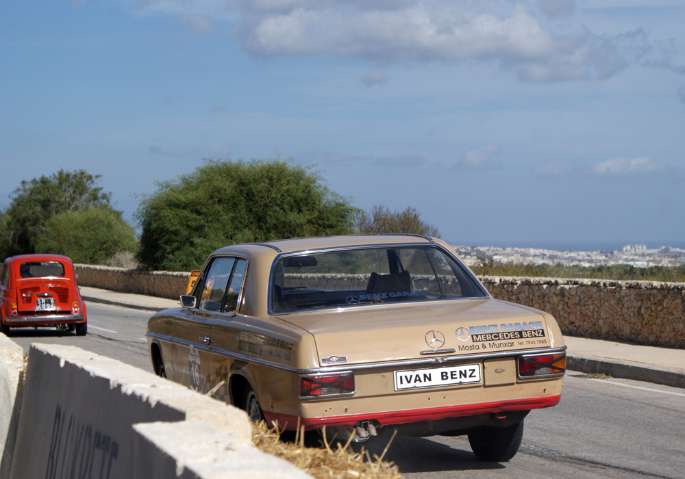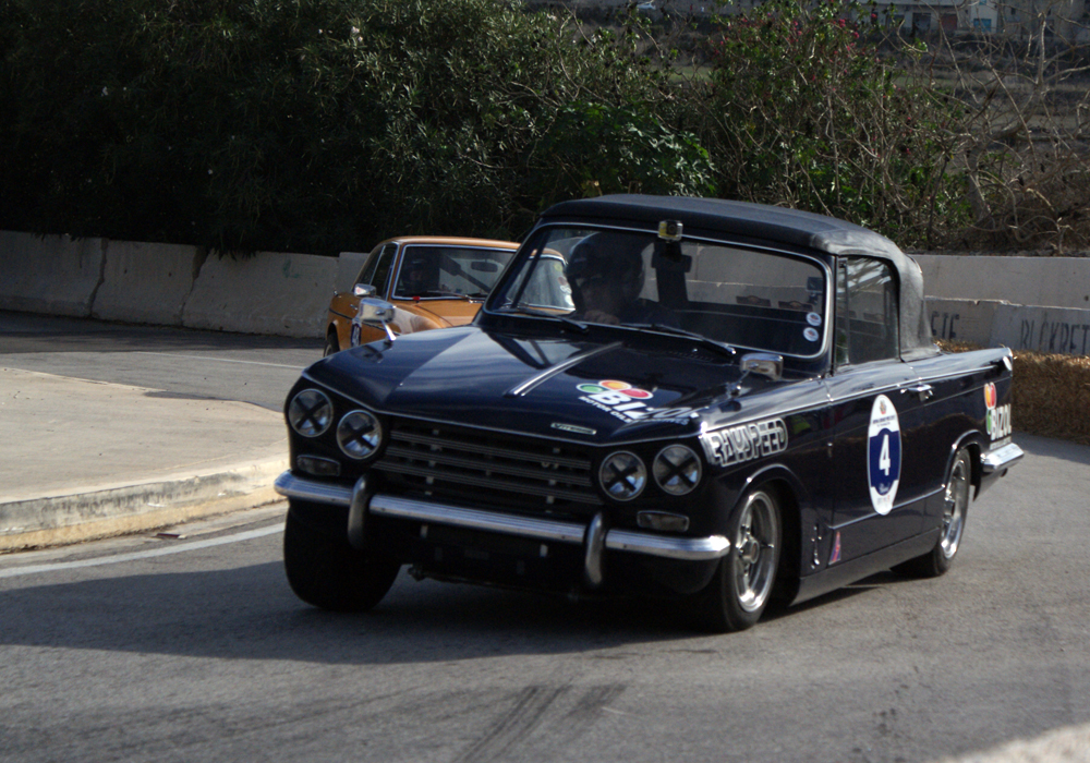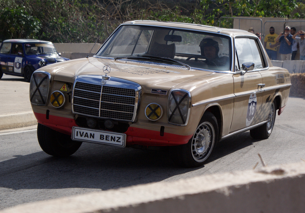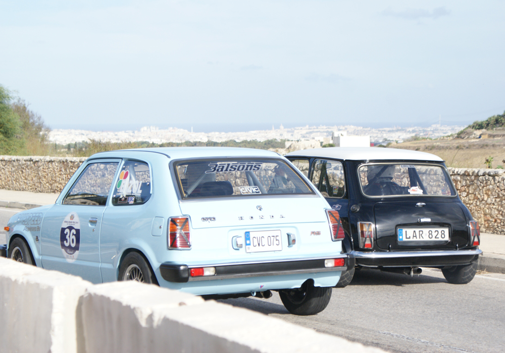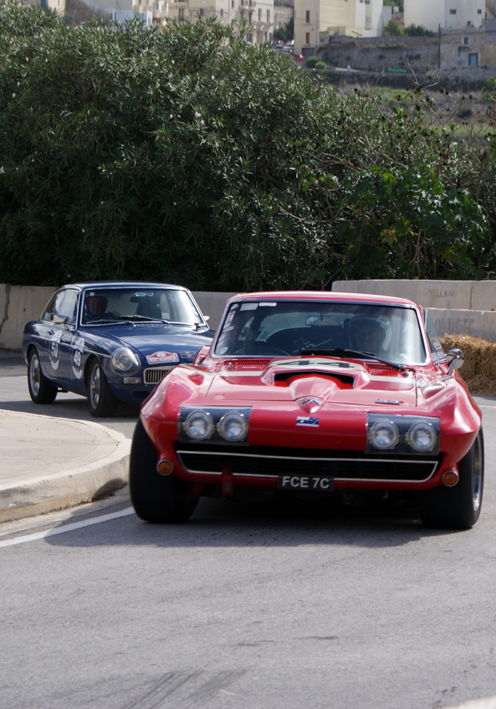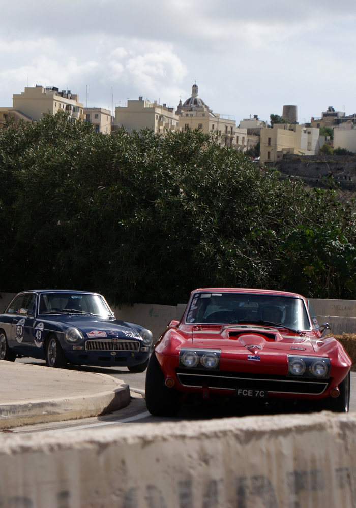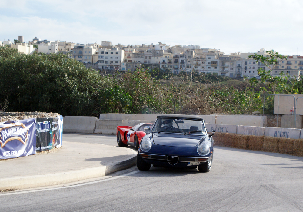 Les sessions suivantes seront plus classiques: toutes les autos vont s’affronter par 8. Alfa Giulia, MG B, TR3, TR4, TR6, Vitesse, Fiat 500, Lotus Elan et Minis en pagaille. Parmi ces concurrents, quelques-uns seront amusants à regarder: Joseph Calleja, au volant d’une vraie Sting Ray préparée d’usine, tentera toute la journée de faire tourner cette enclume surpuissante. Ivan Farrugia, alias « Ivan Benz », passera tout son temps à maintenir les travers de son coupé 280 CE, au son de son 6 cylindres épuisé par cette épreuve à laquelle il n’a jamais été destiné. Mauro Porteli au volant d’une Alfa GTV extrême n’arrivera pas à esquiver la paille de la première chicane, l’expédiant tout droit dans le trottoir au bout d’un tour.