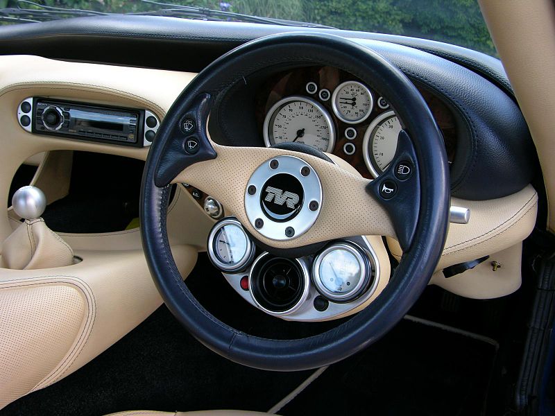 Le cuir est partout, il n’y a presque pas de plastique à bord. Depuis les premières Grifith ou même la Tuscan, il y a eu un effort sur la qualité de l’ensemble. Bien sur il reste encore quelques trucs en plastique « collés » au sikaflex comme le porte savon qui se casse tout le temps la gueule dans votre salle de bains et aucun des gadgets électriques positionnés à bord ne fonctionnent au moment où il le devrait. Passons! Devant cet intérieur magnifiquement baroque, il y’a un V8. Cette mécanique est directement issue de la compétition, elle hurle de bonheur en approchant la zone rouge avant d’être castrée par un buzzer.
