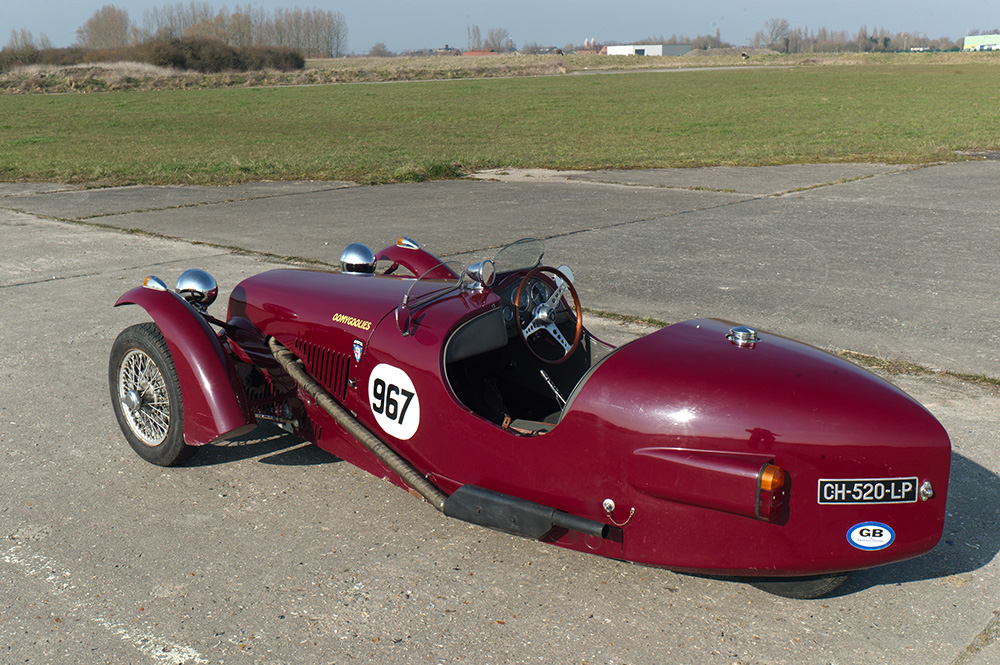 La ligne est originale, se démarquant des copies plus ou moins abouties des Morgan ThreeWheelers. Sa culture automobile des années 30 apparaît : avant inspiré par la Delage GP-1500 de 1927, pointe arrière Bordino, ailes Delahaye 1935, ligne tendue et, coup de génie, un tonneau cover en dur, comme sur les Jaguar D victorieuses au Mans.